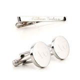Engraved Round Silver Cufflinks and Tie Bar Set