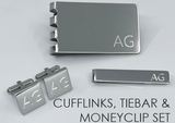 Deal 1- Engraved Square Silver Cufflink, Tie Bar & Money Clip Set