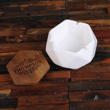 Upgrade a friend or family member’s ashtray by giving them this beautiful geometric ceramic ashtray. Each ashtray comes with an accompanying wood lid and a keepsake wood gift box. Personalize the whole set with your custom design, text, or monogram. We can add it to a gift set or you can give it as a standalone gift. Let us know how we can make this special for you.