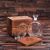 Personalized 4 Pc Men's Gift Set W/Keepsake Box - Decanter, Shot Glasses, Journal