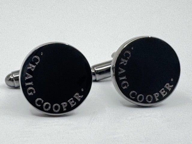Personalised Engraved Full Name Round Gunmetal Cufflinks
