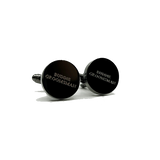 Personalise a pair of high shine Gunmetal cufflinks with your own engraved design.
