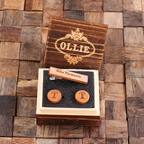 Personalised Round Wood Cufflinks and Tie Bar Gift Set