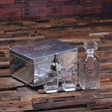 Personalized Decanter, Whiskey Glasses And Steel Box With Lock