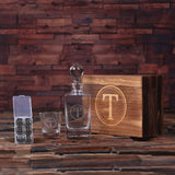 Personalized Scotch Whiskey Decanter Bottle, Glass, 6 Ice Cubes With Wood Box