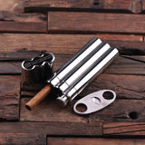 Personalized Stainless Steel Cigar Holder With Whiskey Flask And Cutters