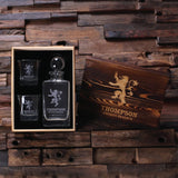 Personalized Whiskey Decanter With Round Bottle Lid, 2 Whiskey Glasses And Wood Box - A