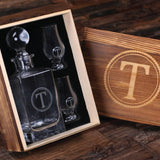 Personalized Whiskey Decanter With Round Bottle Lid, 2 Whiskey Sniffers And Wood Box