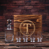 Personalized Whiskey Decanter With Round Bottle Lid, 4 Whiskey Sniffers And Wood Box