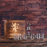 Personalized Whiskey Decanter With Global Bottle Lid, 4 Whiskey Glasses And Wood Box - A