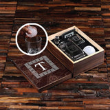 Cleverly presented personalized whiskey glass, slate coaster, and whiskey ice ball mold. The whiskey ball ice cube maker crafts a perfect 2.5″ diameter ball each time. The wood box is with a vintage world map and printed monogram. Of course, we can print anything you want.